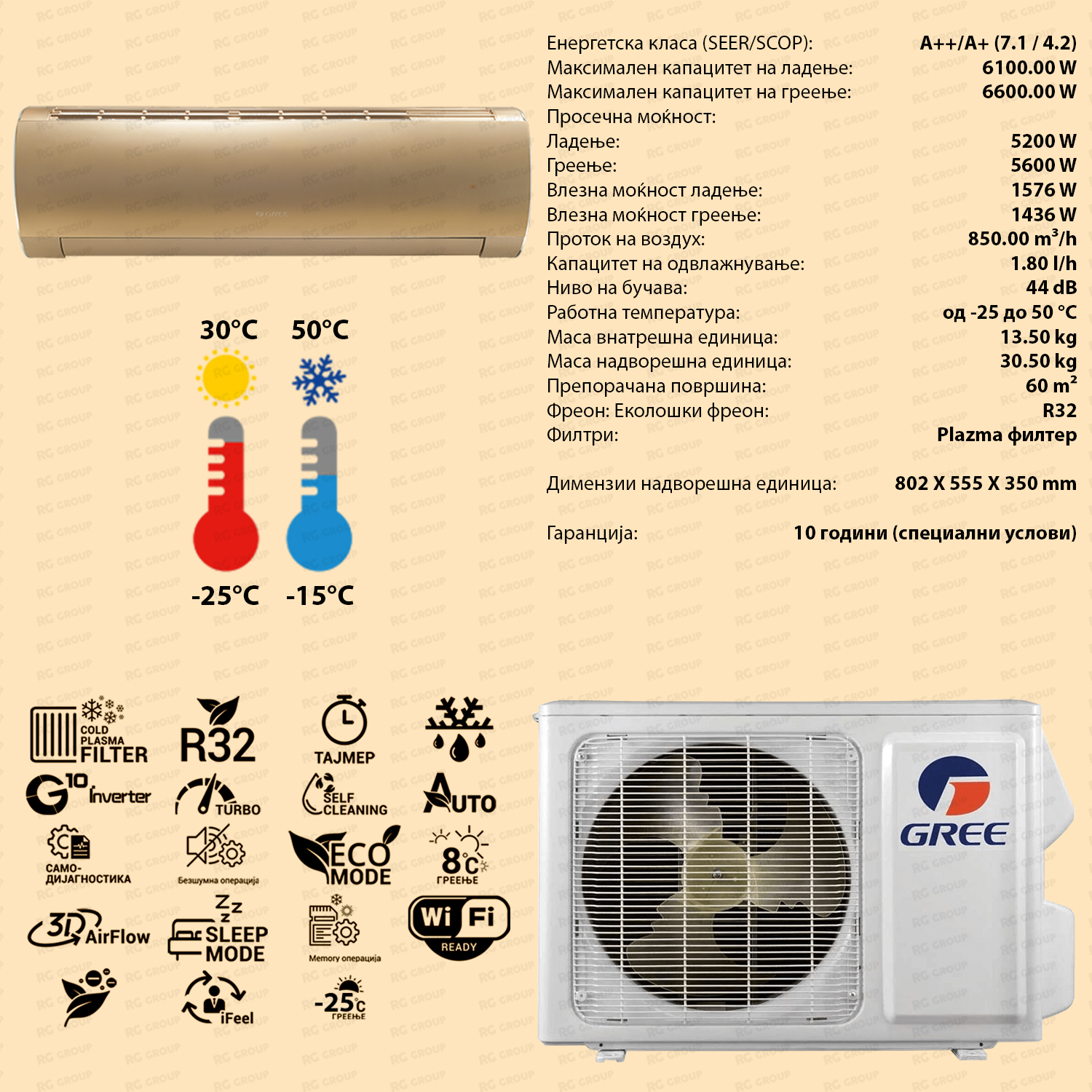 | Dimenzii nadvoresna edinica: | 802x555x350 mm |